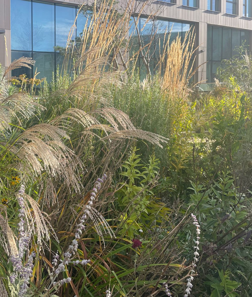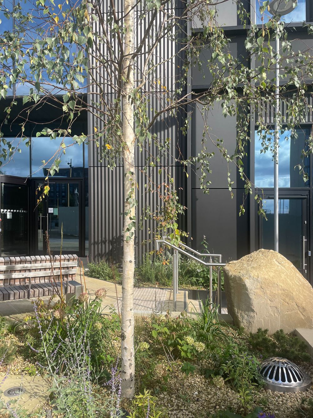 The 'Grey to Green' planting and landscape scheme through Sheffield City Centre incorporates planting and SUDS.