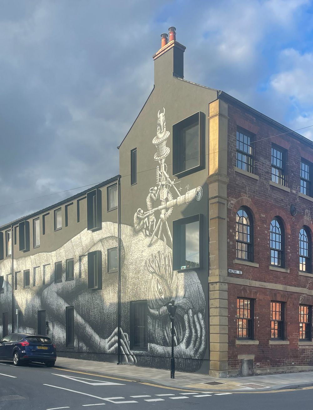 The huge mural is by Sheffield based artist, Phlegm.