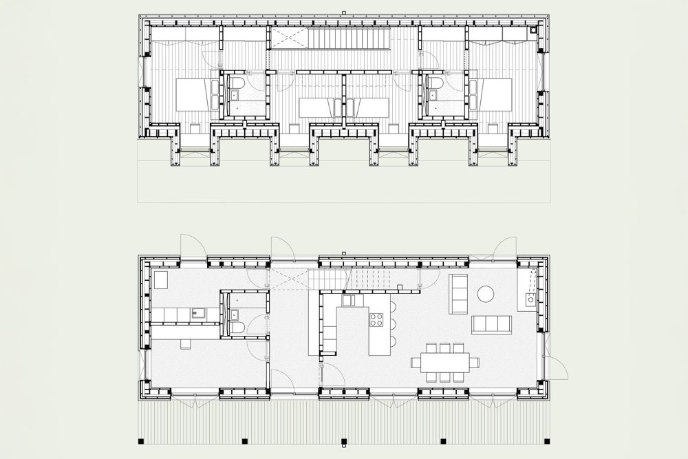THE FORM OF THE HOUSE IS SIMILAR TO A 'SALTBOX' HOUSE. THE LOW EAVES OFFERS PROTECTION FROM THE PREVAILING WIND.