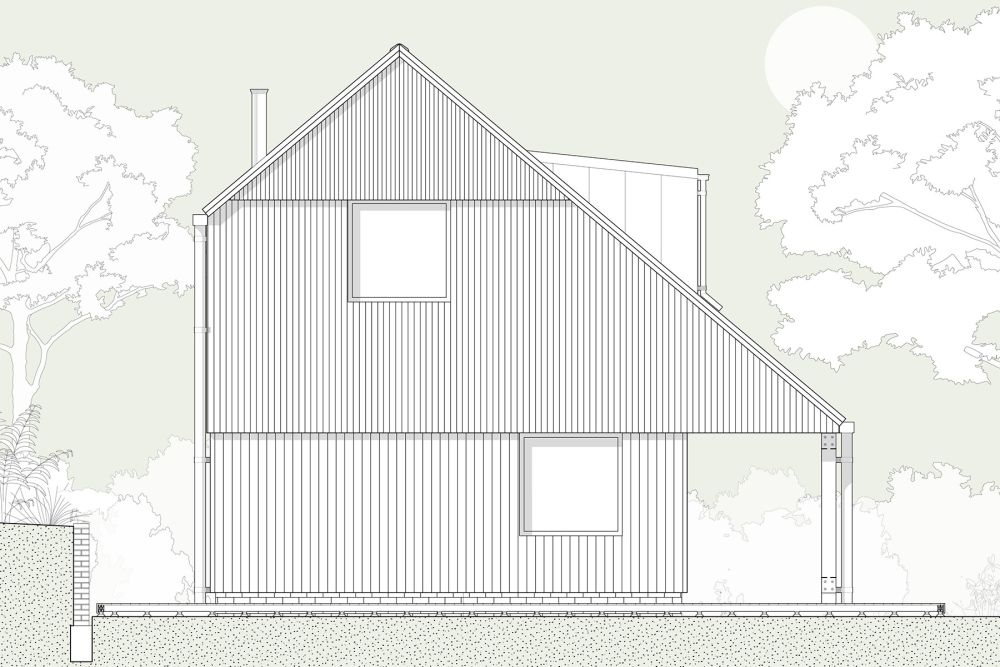 Studio Multi is working with a family on their low energy self-build home on the Isle of Thanet in Kent. The house nestles within an established group of trees and houses between agricultural fields close to the the summit of the Manston Chalk Plateau. Planning was granted in February 2023.