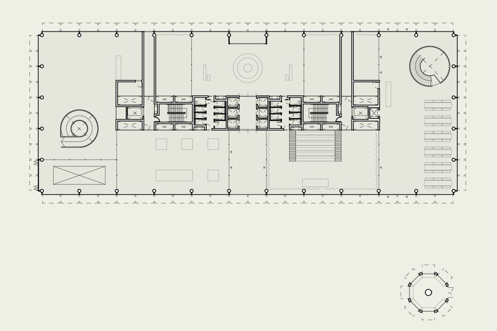 The building is conceived as a simple volume that sits calmly between the surrounding buildings, characterised by more complex forms. Twelve-storeys high, the building sits below the level of the protected view from Parliament Hill to St Paul’s.
