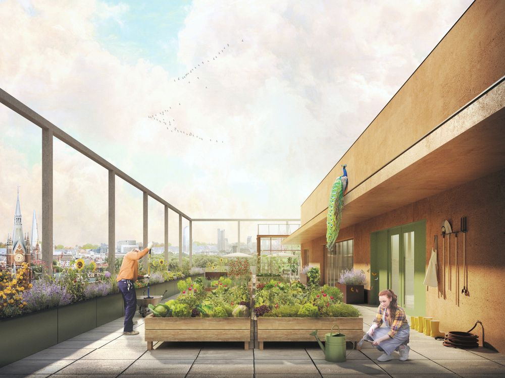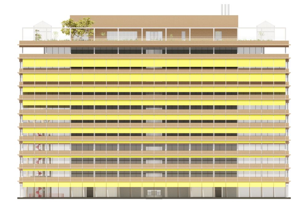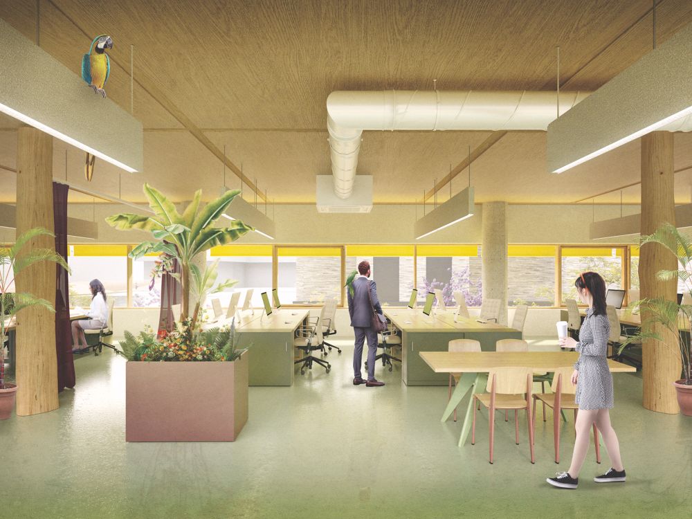 The top floor of the building includes a technical deck, meeting rooms and a viewing terrace, capitalising on the spectacular city views. The roof is inhabited by an urban farm with an associated greenhouse and a café, accessed via a dedicated lift from the ground.